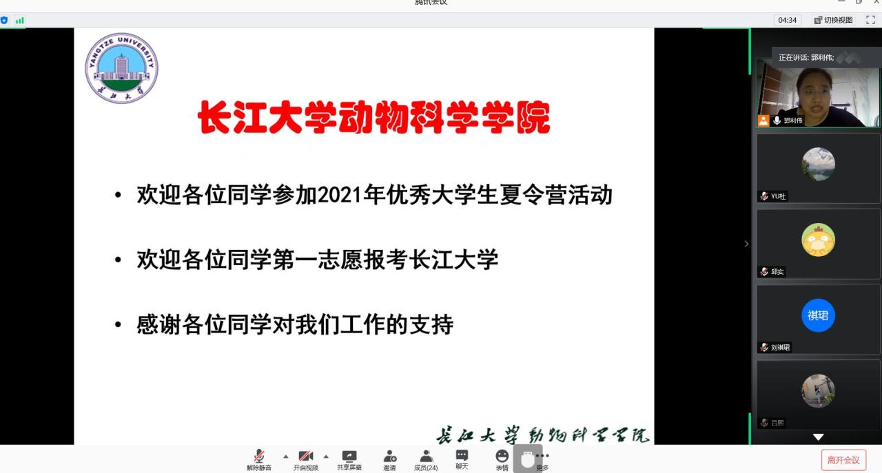 为促进全国各高校优秀老员工之间的交流,增进优秀老员工对永利yl23411集团官网以及动物科学公司相关专业学科的了解,帮助同学们了解当前研究热点和公司的科研教学情况,激发老员工从事科学研究的兴趣,从中选拔优秀的本科生到公司进行研究生学习深造6月20-7月14日我们利用线上进行广泛的招生宣传。7月15日至16日动物科学学员通过腾讯会议在线上成功举办了2020年“全国优秀老员工暑期夏令营”。本次夏令营吸引了来自全国20多所高校80余名本科生报名。