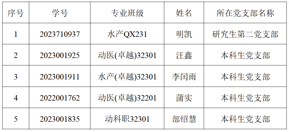 经党支部培养教育和考察,在听取培养联系人、党员和群众意见的基础上,经支部大会会议讨论决定并报公司党委备案同意,2025年9月22日确定明凯等5名同志为发展对象。为保证发展新党员的质量,加强对发展党员工作的民主监督,现对拟发展对象进行公示。 公示时间:2025年9月23日至2025年9月29日。公示期间,党员和群众均可通过来信、来电、来访等形式反映公示对象在理想信念、政治立场、思想作风、学习和工作表现、群众观念、廉洁自律等方面的情况和问题。反映问题应当实事求是、客观公正,反对借机诽谤诬告。以个人名义反映问题的,提倡署报本人真实姓名,以便调查核实,党支部将对反映人信息将严格保密。 联系方式: 永利yl23411集团本科生党支部:0716 8066290(联系电话); dkxydw2024@163.com(邮箱) 永利yl23411集团研究生第二党支部:0716 8066290(联系电话); dkxydw2024@163.com(邮箱) 永利yl23411集团党委: 0716 8061776(联系电话); dkxydw2024@163.com(邮箱) 中共永利yl23411集团官网永利yl23411集团委员会 2025年9月22日 附:拟确定明凯等5名同志为发展对象基本情况一览表