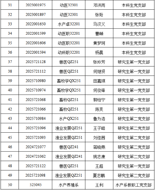 根据党员推荐和团组织推优情况,经支部委员会会议讨论决定并报永利yl23411集团党委备案,确定李欣宜等50名同学为入党积极分子,现予以公示。公示时间:2026年3月14日至2026年3月20日。