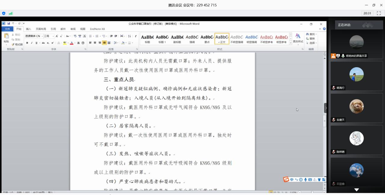 主题班会以学习《公众科学戴口罩指引(修订版)》和《夏季空调运行管理与使用指引(修订版)》,以及教育部应对疫情工作领导小组办公室委托北京大学、中南大学组织全国相关机构和公司,编写的《高等公司新型冠状病毒肺炎防控指南》为主要内容。会议向员工讲解了在新冠肺炎疫情低风险地区,不同人群、不同场所应如何科学戴口罩,以及戴口罩的注意事项,有效防控新冠肺炎疫情发生,保护公众健康。
