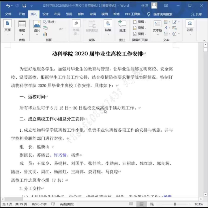 苏晓云首先对即将返校的同学表示热烈的欢迎,并就了毕业生返校安全、办理离校手续流程、公司纪律和公司毕业工作安排等4个方面重点工作进行强调,指出同学们在返校、在校和离校途中都必须以安全第一为原则,做好自身防护;返校后要严格遵守公司纪律要求,根据工作流程办理离校手续之后按时离校,同时希望同学们积极参与公司为毕业生精心准备“五个一”毕业活动。会议最后,与会位老师对同学们提出的各类问题作了耐心细致的解答。