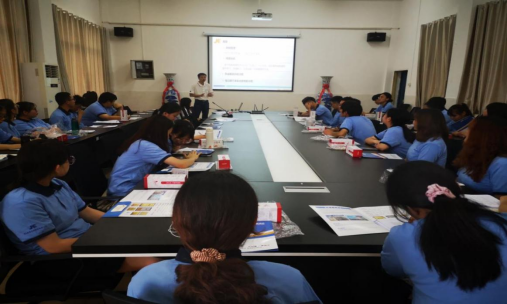 由江经理进行开班主题演讲,阐明企业三大基点:爱、信任、承诺,传递企业精神。对同学们作出期望,“未来将需要大量的具备'工匠精神'、管理知识、创新能力兼具的复合型人才,希望大家能利用“嘉康班”这个平台,学习知识,提高技能,增长见识,实现自己的人生价值和职业目标。”仪式最后,江经理对本次嘉康班表示充分肯定,也表明企业对本次嘉康班的大力支持与期望。