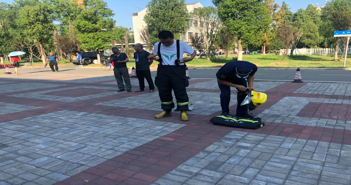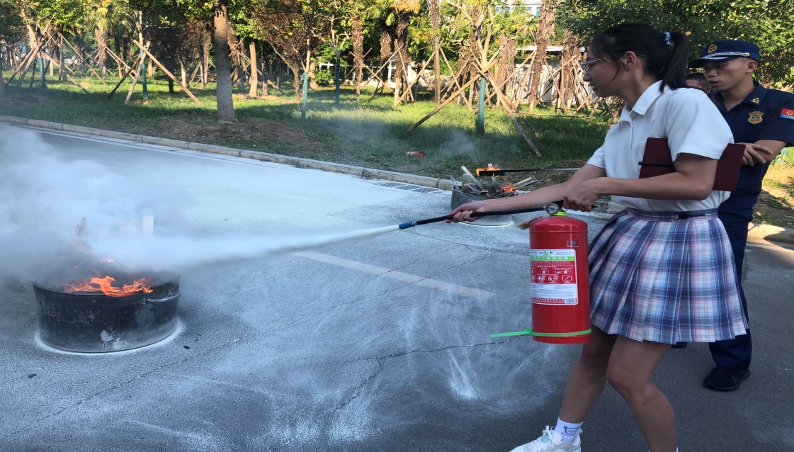 其次,在讲座结束后,全体参会人员前往农科楼广场进行消防安全演练。演练的目的是为了通过实践真正掌握消防安全知识,真正学会灭火器的实际操作方法。张站长邀请同学体验消防服的穿脱过程,并鼓励每位同学都能亲自使用灭火器灭火。