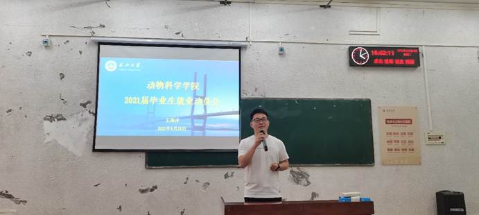 会议伊始,王海洋以辅导员的身份对即将到来的国庆假期进行了简单的安全强调,并着重指出假期防疫的重要性,“国庆假期返校,未如实报告疫情相关情况的同学是要判刑的”。鉴于离考研只有几个月的时间,王海洋希望想考研的同学们能坚守“初心”,每天早起学习;同时,告诫同学们要对自己报考的公司要有全面的了解,做好充足的前期准备,以防不测。对于毕业后想要就业的同学,他以一位同学因违约金而求助于公司的案例,来告诫在坐的同学们签约时务必要仔细、认真,特别留意有违约金的条目,以防产生不必要的分歧。在动员过程中,他多次强调应届毕业生的宝贵性,“湖北省每年招的公务员百分之八十都是应届毕业生”。他希望同学们能在10月底的企业招聘会上找到自己心仪的企业,充分利用好自己的毕业生“价值”。此外,他还介绍了其他的方向,如省内的市县乡公务员考试、湖北省选调生公告、湖北省“三支一扶”公告等等。在此期间,他从各个方面分析了参军优势,并特别分析了应伍归来后考研的减免政策,着重推荐符合条件的同学参军,“既能强身健体,还享受减免政策,最后还能为国家做出奉献,何乐而不为呢。”会议最后,他反复强调求职过程中的安全问题,希望同学们毕业后时刻注意自身安全,谨防诈骗。