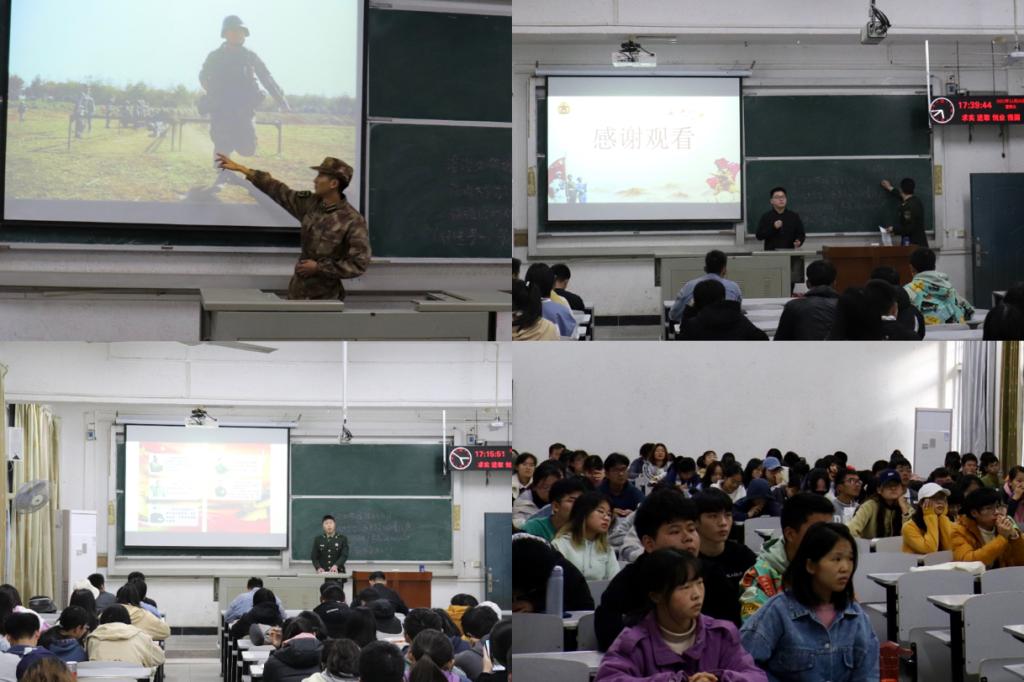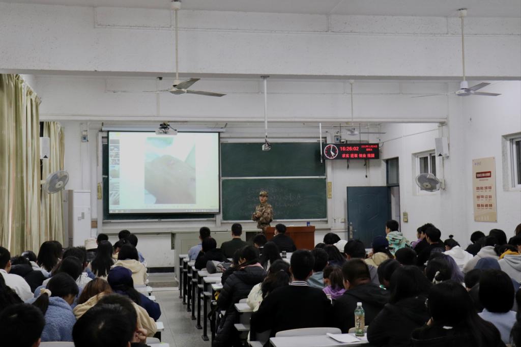(通讯员 董天舒)为学习贯彻习近平新时代中国特色社会主义思想,响应国家征兵政策,推进国防和军队现代化建设,鼓励老员工积极参军入伍,使员工更加全面地了解应征入伍的相关条件和政策,公司于2021年11月26日下午四时,在六教103举办了征兵宣讲会。活动由动物科学公司团委书记、18级辅导员王海洋老师主持,学工办主任、20级辅导员陆波老师出席本次宣讲会。王一名和肖子君两位优秀学长在会上进行演讲分享,此次到场人员有2021级动医类一、二、三班全体成员和有意参军人员。