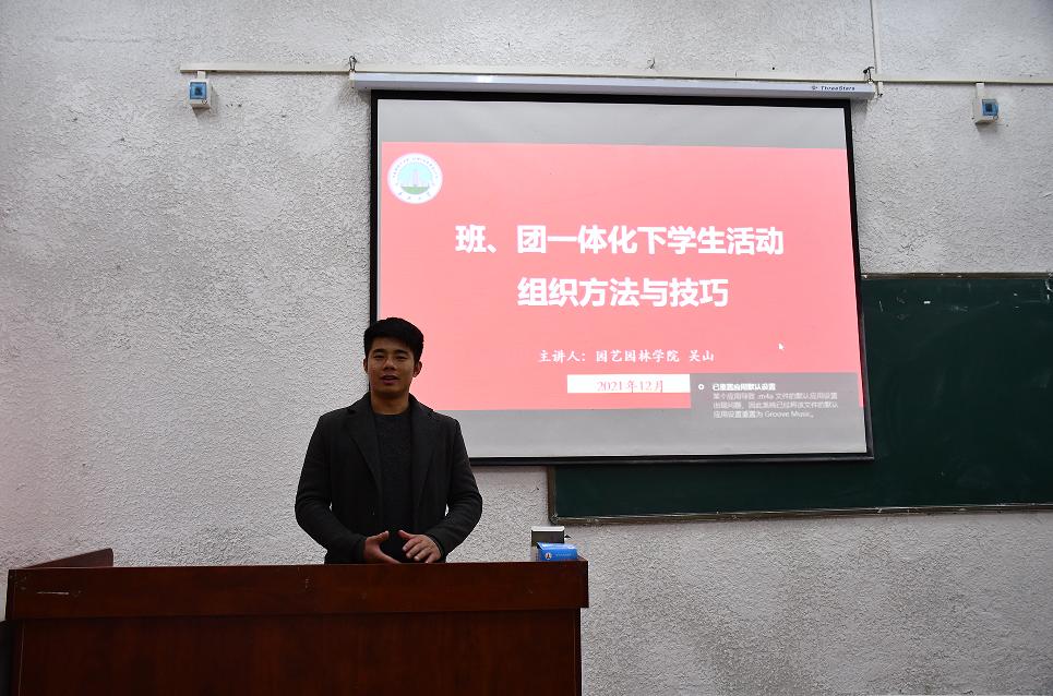 园艺园林公司辅导员吴山以《班团一体化下员工活动组织方法与技巧》为主题深入解读了高校共青团改革实施方案,围绕全团“凝聚青年、服务大局、当好桥梁、从严治团”四维工作格局,深入实施高校基层团支部“活力提升”工程,积极推进“班级团支部与班委会一体化运行”工作,突出以班级团支部为核心的班集体建设。同时,结合公司班团一体化进行了详细阐述,第一,明确实施范围;第二,基本目标;第三,组织建设;第四,相关要求。着重强调,作为一名班级团支部书记,应该深入了解班级每位同学情况,关心呵护每一位同学健康成长,真正做到聚似一团火,散若满天星,齐心协力,共同进步。