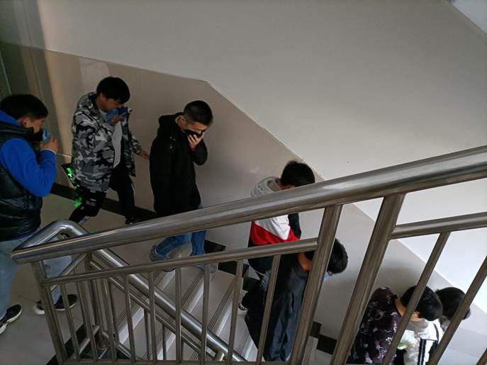 下午4时,消防安全警报拉响,消防烟雾弹的烟尘在公寓飘散开来,在辅导员与消防安全员的有序指挥下,寝室内的同学们迅速行动,以湿毛巾捂住口鼻,躬身扶墙,沿着通道内侧的墙壁,按照楼层由小到大的顺序依次撤离。尽管人数众多,但同学们的撤离井然有序,并未发生一起踩踏事故,整个过程非常迅速,在短短数分钟内所有人完成了撤离。所有人撤出寝室后,消防安全演练负责人与领带向大家作讲话,阐述此次活动的目的及意义,宣讲消防安全知识,嘱咐大家重视寝室内的安全隐患,及时上报。讲话结束后,同学们有序离场,此次演练到此结束。