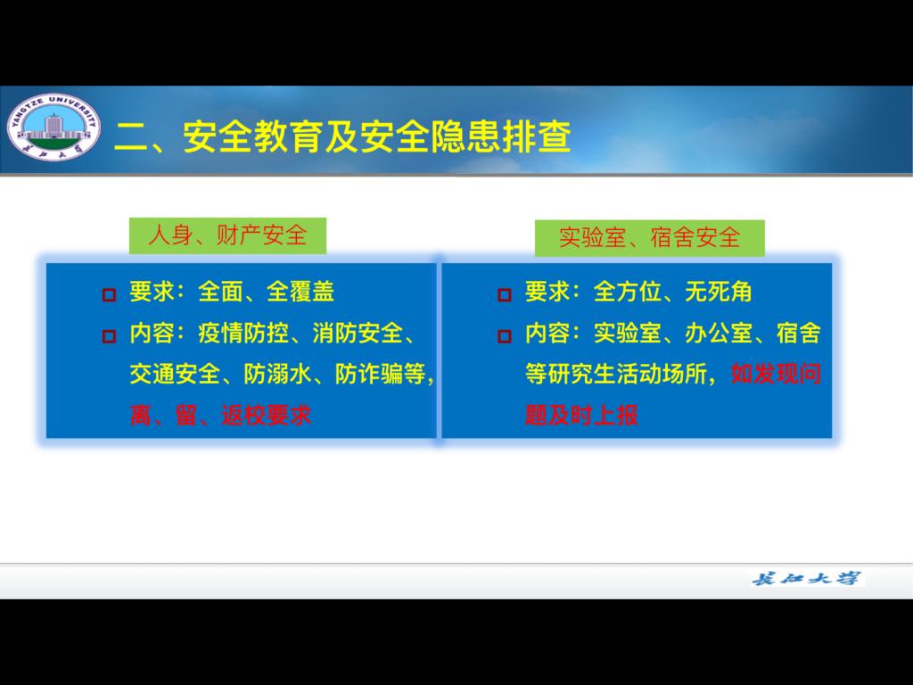 此次安全教育会议的开展,旨在进一步提高同学们的安全防范意识和疫情防控意识,加强对研究生的寒假管理,希望每位研究生都能有一个安全、快乐的寒假。