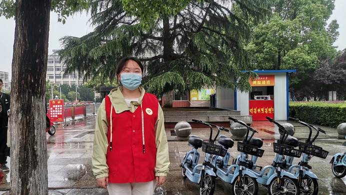 同学们在老师的指导下,穿上鲜红的志愿者马甲,即使是下雨天也都没有停下脚步,各自坚守在每个路口,积极弘扬“不怕苦、不怕累”的精神,团结一致,服务周边。当看到共享单车和电动车杂乱地摆放在路边,为了不对行人和道路安全造成影响,志愿者们迅速进入状态,耐心地将其摆放整齐,整理成排。同时,他们也没有忽视车篮内的垃圾、单车座垫以及车把手上的污垢,将垃圾收入袋中,并仔细清理了每处污垢。一部分志愿者则站在路口,对非机动车和行人的越线停靠、不文明穿行马路等行为进行监督、劝阻,降低下雨天交通事故发生的机率。志愿者们以高度的社会责任感、昂扬的精神面貌展现了他们的良好形象。在川流不息的人群中,身穿红马甲的青年志愿者们俨然成为了路边一道别样的风景。在看到有需要帮助的行人时,他们主动上前询问并给予帮助。即使天空下着雨,但志愿者们仍坚守在各自的岗位上,不畏困难、不辞辛苦、微笑不减、热情更盛!