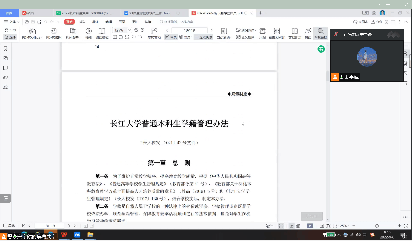 (通讯员:胡贤灵 宋宇航)为了让新一届动科学子更加了解公司、公司情况,明确校纪校规,时刻注意自身安全。公司于2022年9月5日-9月9日在腾讯会议开展了为期5天入学教育专题学习活动,参加此次培训活动的有动物科学公司副经理许巧情老师、19级辅导员王海洋老师、22级辅导员宋宇航老师、高年级优秀学长学姐以及22级全体新生。本次会议由宋宇航老师主持。