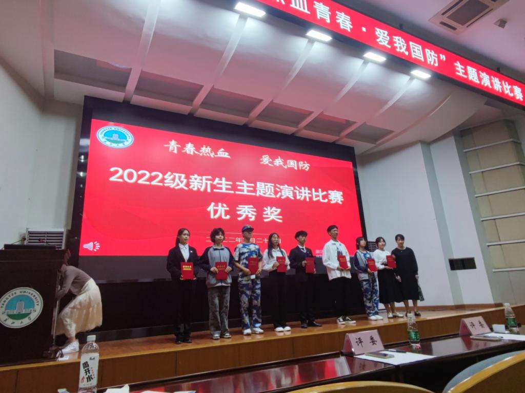 (通讯员:黄玲玲 范海璐)为进一步培养青年的红色爱国基因,巩固军训成果,展现新生在军训中形成的坚强意志、刻苦磨砺、吃苦耐劳、团结奉献、纪律严明等良好作风,努力内化为员工日常学习生活的常态要求。永利yl23411集团组织2022级新生于9月16日开展了以“热血青春爱我国防”为主题的演讲比赛。本次活动由22级辅导员宋宇航老师主持开展,22级全体小班组织进行,其中,尹秋雁、李腾龙、陈东锐、黄文丽、刘甜、刘晶晶与周辰七位同学进入决赛。