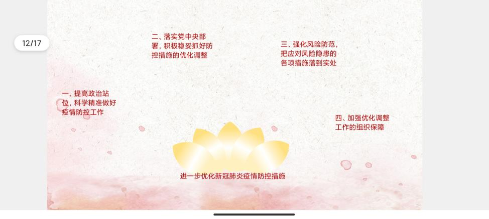 通过刘小菁同学的讲解使同学们了解到,面对突如其来的新冠肺炎疫情,国家坚持人民至上、生命至上,坚持动态清零不动摇的理念,开展了抗击疫情的人民战争、总体战、阻击战,最大限度保护了人民生命安全和身体健康,使疫情防控和经济社会发展取得重大成果。