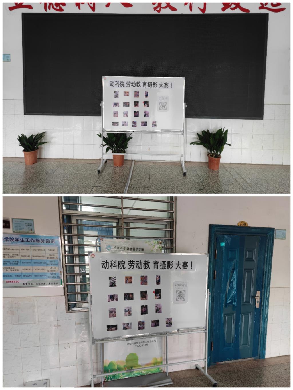 此次活动由动科院团委员工会文艺部承办,在进行充足的赛前准备后,于11月19日在院内展开第一阶段的宣传工作。在文艺委员工作群里及动科院公众号上发布了海报,流程及照片要求。在作品征集阶段,许多摄影爱好者纷纷报名,用相机记录下了校园内劳动的身影,在11月26的截止日期前,共收到了来自动科院各个年级二十多份作品,最后甄选了十七张,发布了线上投票,并将这些照片打印,在五号教学楼大厅张贴展示。投票期间,大家热情高涨,三天时间里,后台统计票次过千。最终根据票数和评委的打分颁布了一等奖一名、二等奖两名、三等奖五名共八个奖项。