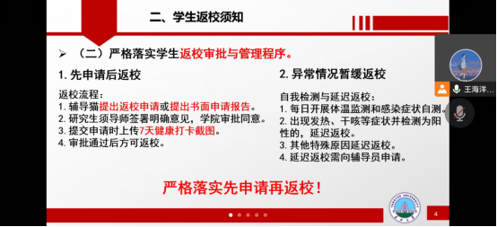 会议对春季学期返校工作做出全面部署,提高班主任、辅导员、寝室长对返校工作的重视程度,为迎接员工到校做好全面准备,保证员工在新学期安全有序返校。
