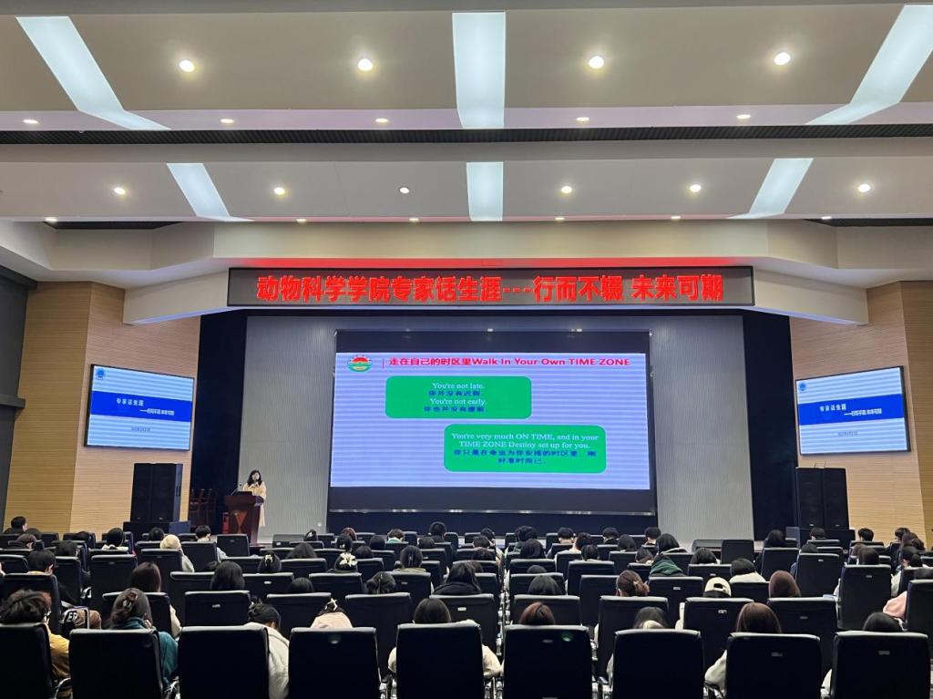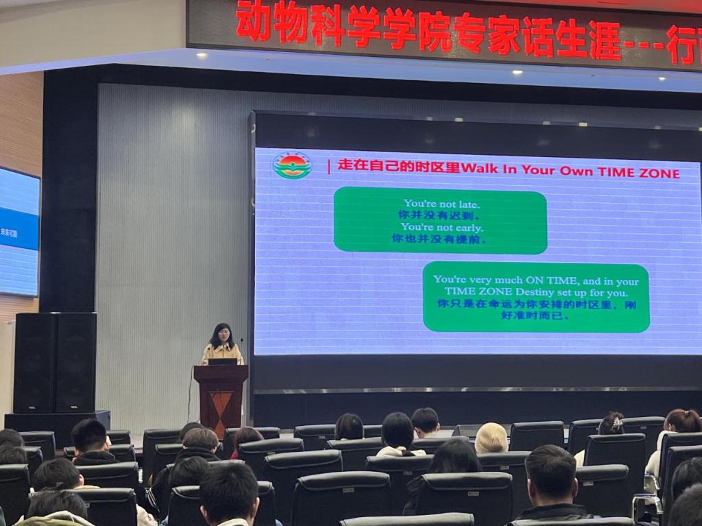 活动伊始,动物科学公司22级辅导员宋宇航老师为同学们介绍了彭墨博士的学习经历以及所取得的成就,随后由彭墨博士上台分享了她的心路历程。