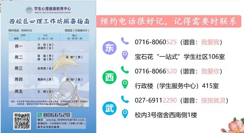 公司共有四级心理危机干预系统,包含公司、院系、班级、寝室四个方面,重视并有作为于自杀预防同时在各个校区设立了心理咨询预约电话,当学习生活上出现问题时,欢迎各位同学致电咨询。