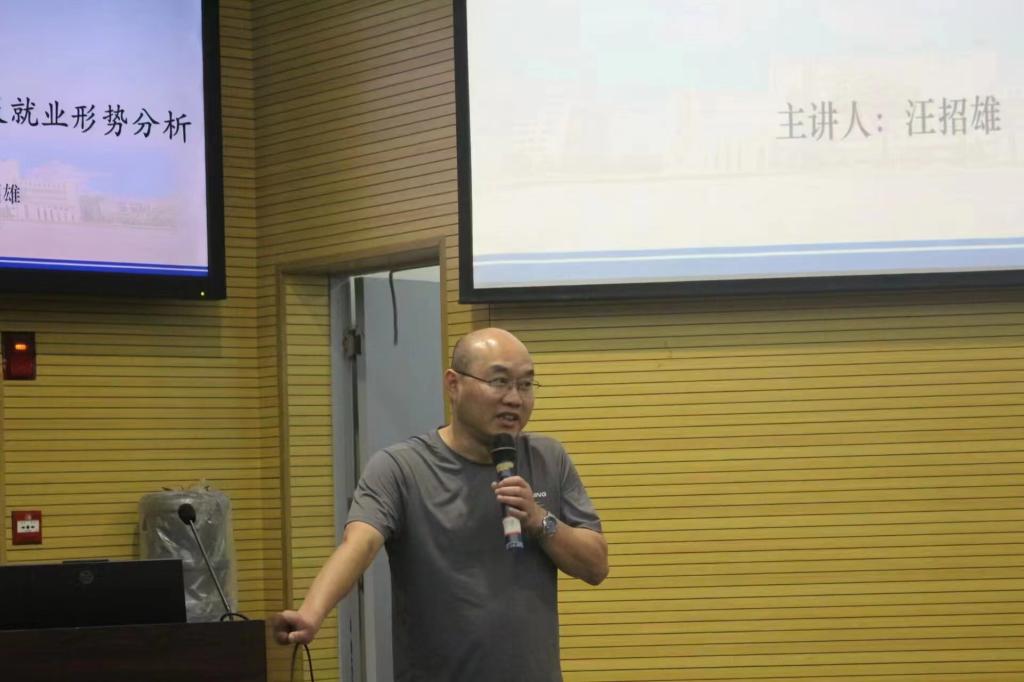 随后,汪招雄老师作为教师代表上台发言,对当前的就业形势进行了深入的分析,为毕业生们提供了宝贵的建议和指导。