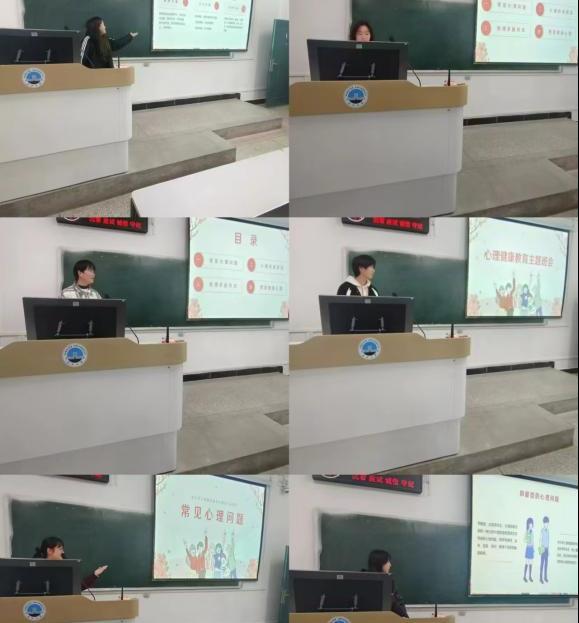 各班心理委员重点介绍了常见的心理问题如:公司适应不良型心理问题、强迫型心理问题、抑郁型心理问题、焦虑型心理问题等,也介绍了心理形成的原因如:本身有注意力缺陷、人际交往障碍等,紧接着心育干部通过案例教会同学们怎么去处理矛盾纠纷,从而引出让同学们提高对健康心理的重视程度。