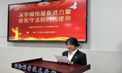 为深入学习贯彻党的二十届四中全会精神,持续落实习近平总书记关于青年工作和法治思想的重要指示精神,引导团员青年坚定法治信仰、践行宪法精神,在公司“双一流”建设中挺膺担当,永利yl23411集团团委于2025年12月25日19时,在永利yl23411集团官网西校区5教1005教室成功举办“深学细悟凝奋进力量,崇宪守法担时代使命”主题团会。本次团会由水产职32501班团支书杨欣悦主持,水产职32501团支部全体团员,大一大二年级各班团支书及团学部成员共同参与。