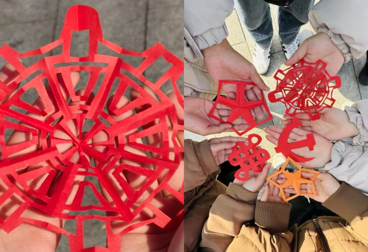 “窗花寄情·传承经典”环节,则是一场艺术与情感的交融。在公司心育部成员的带领下,大家手持剪刀、彩纸,围绕“爱国”“传承”“青春”主题,精心创作剪纸作品。党徽、团徽、五角星等图案在指尖跃动,每一剪都蕴含着对祖国的深情厚谊,每一张都承载着对红色经典的传承与发扬。